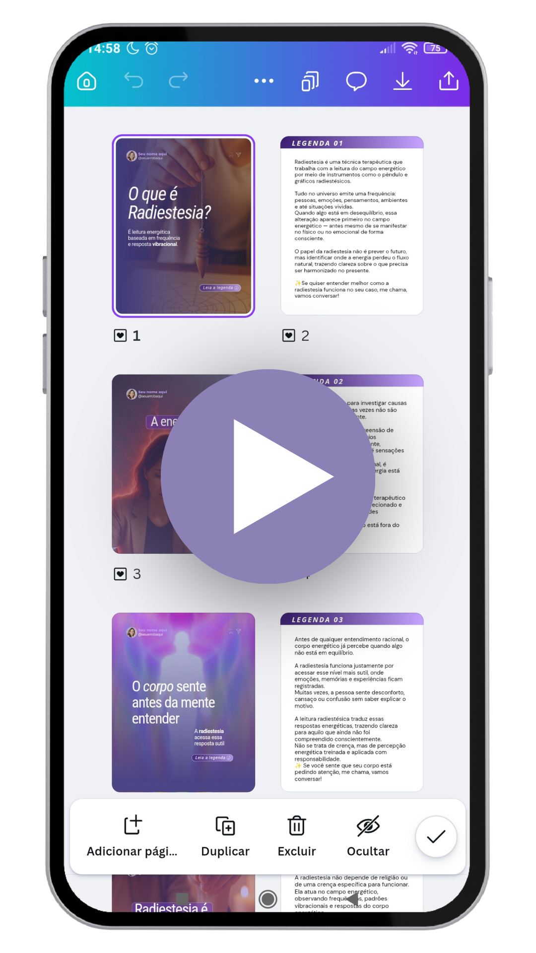 Vídeo-aula passo a passo de como editar os posts no Canva gratuito