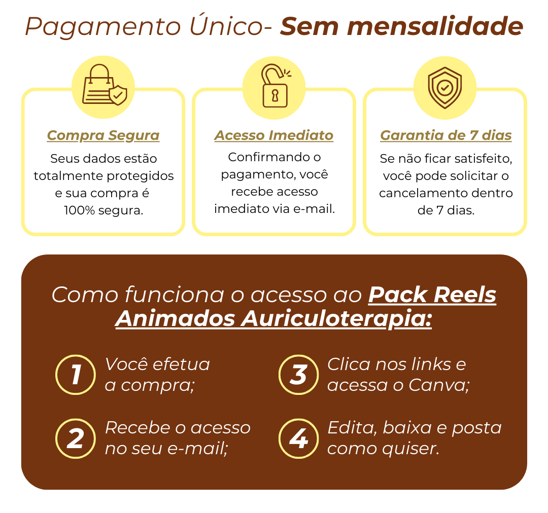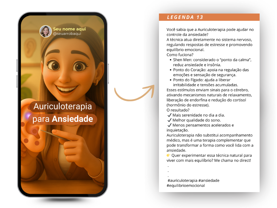 E é exatamente isso que o Pack Reels Animados Auriculoterapia entrega pra você ⤵